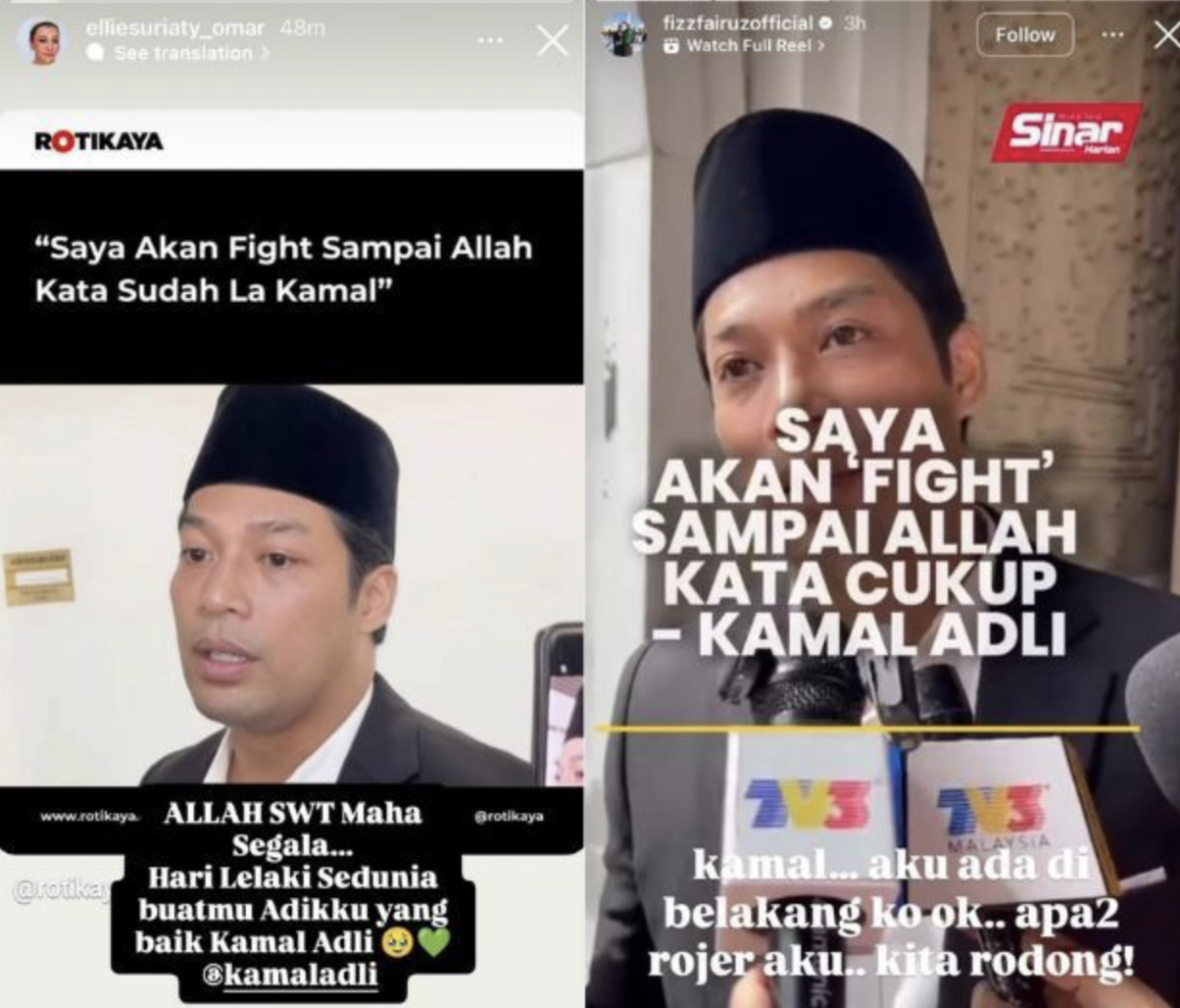 Dalam pada itu, pelakon Datuk Fizz Fairuz juga turut memberikan kata-kata semangat bahawa dia akan berada di belakang Kamal sekiranya diperlukan.