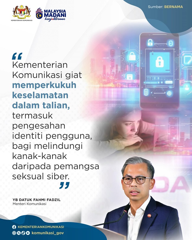 Usaha Kementerian Komunikasi untuk mewujudkan Internet yang selamat tidak terhenti di situ apabila Fahmi baru-baru ini mengumumkan Kabinet secara dasar bersetuju dengan cadangan menaikkan had umur minimum pengguna media sosial kepada 16 tahun.