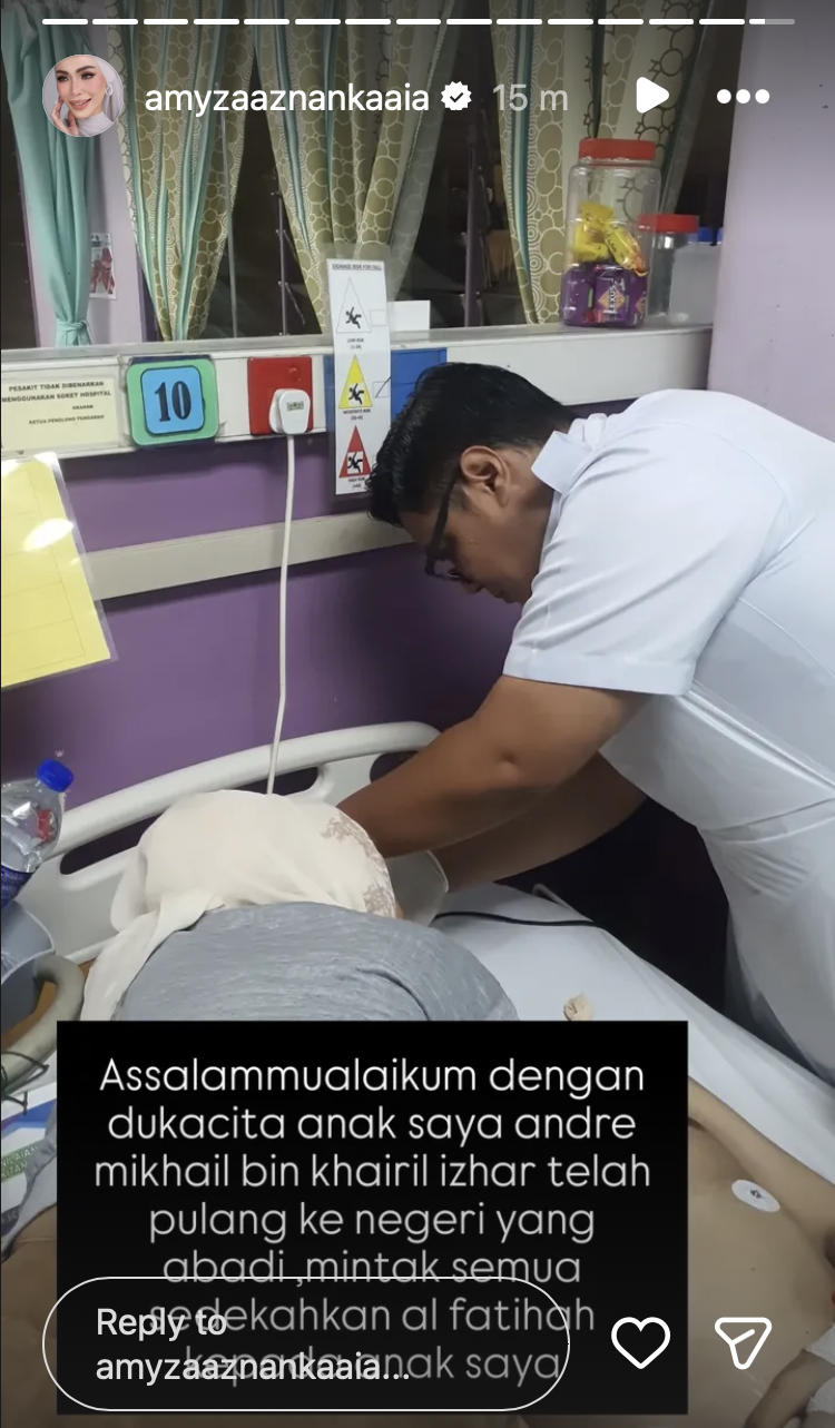 Berita pemergian itu dikongsikan oleh Amyza di Insta Story miliknya sebentar tadi serta meminta untuk sedekahkan Al-Fatihah buat anaknya.