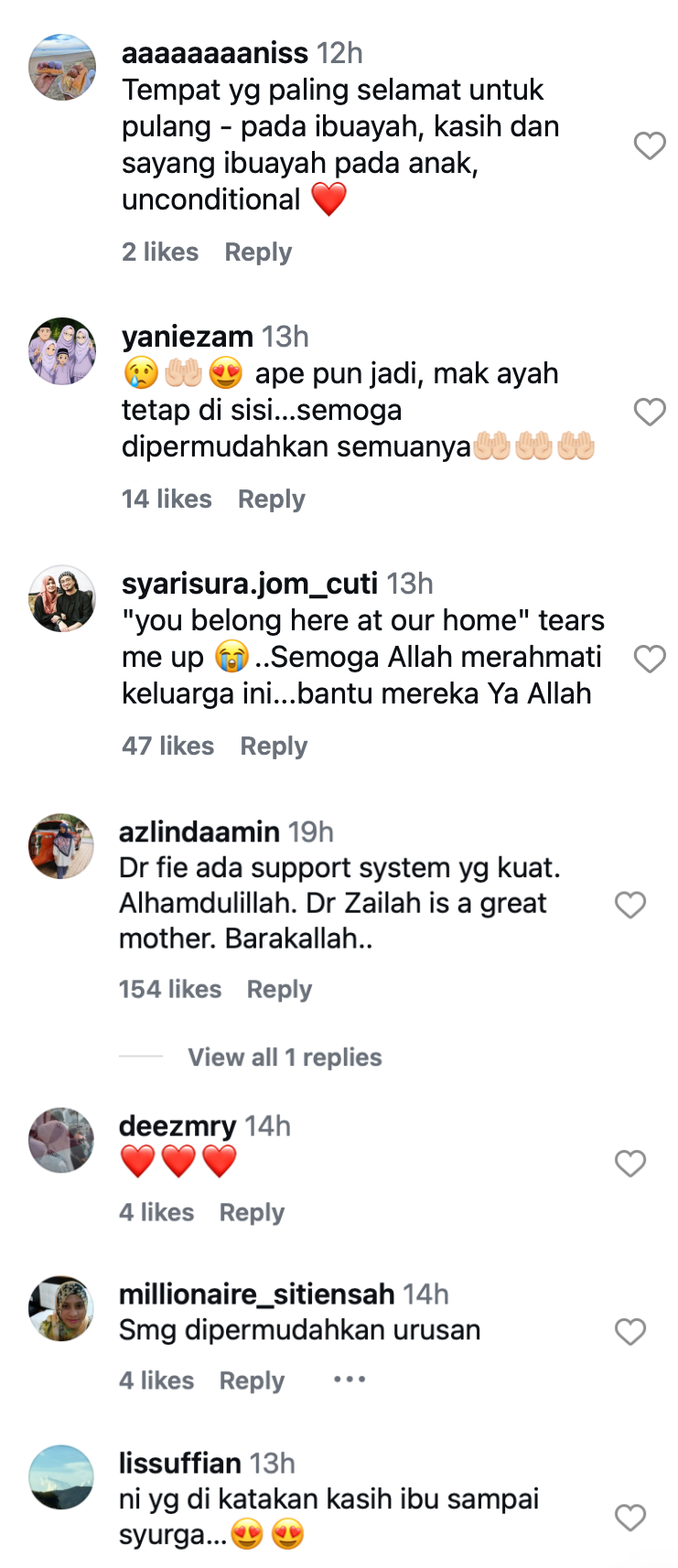 Diruangan komen rata-rata netizen sebak dengan hantaran ibu Dr Fie itu serta mengatakan tempat paling selamat buat anak-anak adalah ibu bapa mereka.