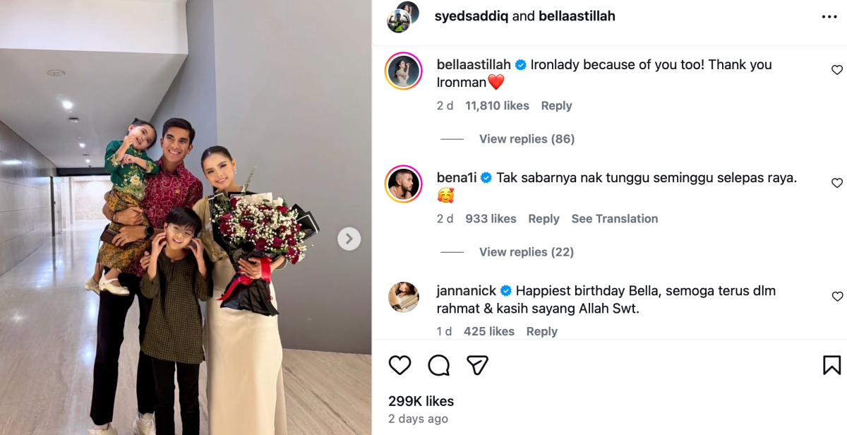 Apa yang menjadi perhatian komen yang ditinggalkan rakan artis, Ben Ali menjadi bualan berbunyi, “Tak sabarnya nak tunggu seminggu selepas raya”.