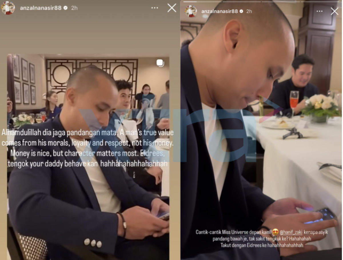 Perkongsian pelakon Anzalna Nasir menjadi perhatian memuat naik video memaparkan suaminya, Hanif Zaki dilihat menunjuk sambil bermain telefon meskipun ada wajitan cantik daripada Miss Universe di hadapannya.