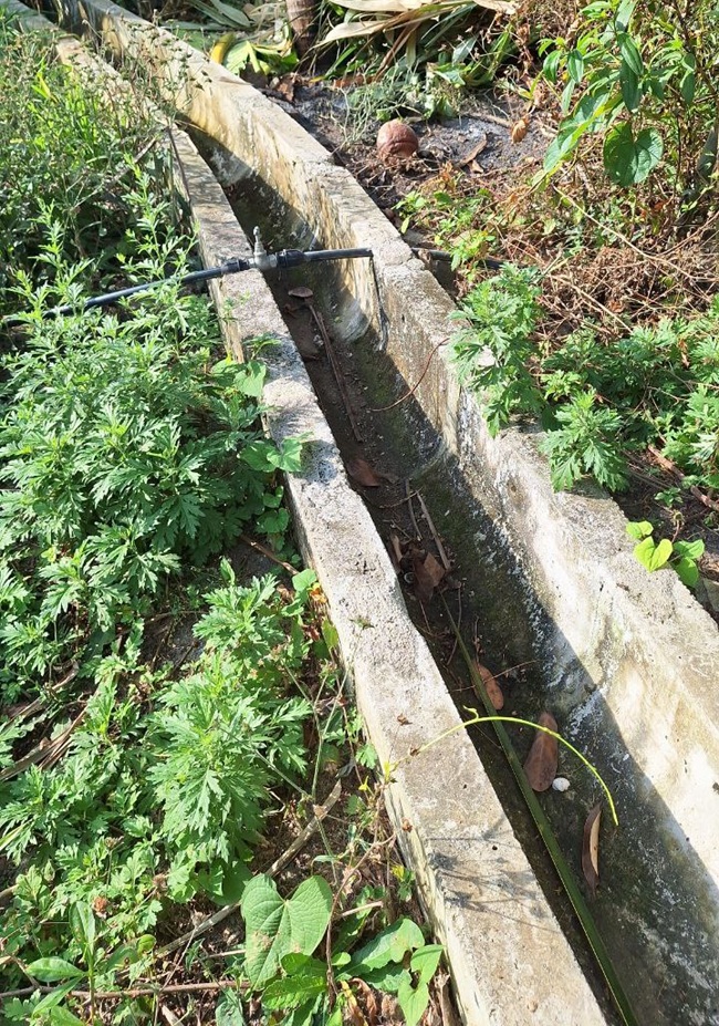 Sebelum ini, penduduk hanya mampu mengorek lubang di tepi rumah dan berharap air tersebut menyerap ke tanah. Namun bau masih ada. Tanah di sekeliling rumah pula sentiasa lembap kerana air tidak mengalir dengan baik.