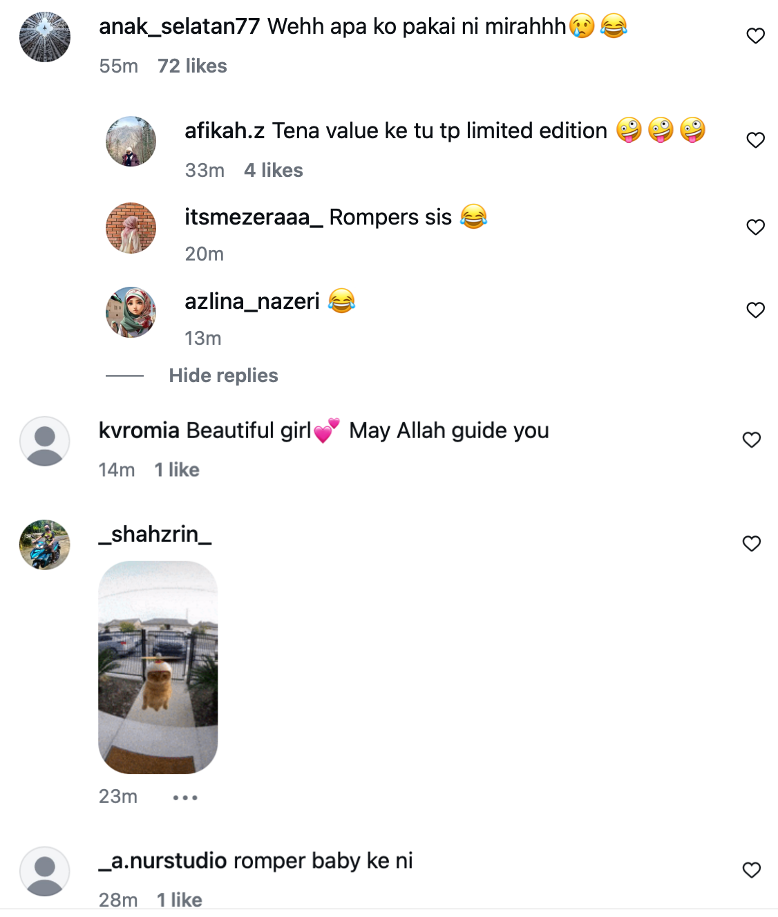 Diruangan komen, rata-rata netizen memuji kecantikan pempengaruh itu, namun ada yang mempersoalkan fesyen apa yang digayakan oleh Ameera. Tidak kurang juga ada yang berseloroh mengatakan Ameera mengenakan baju seperti romper bayi.