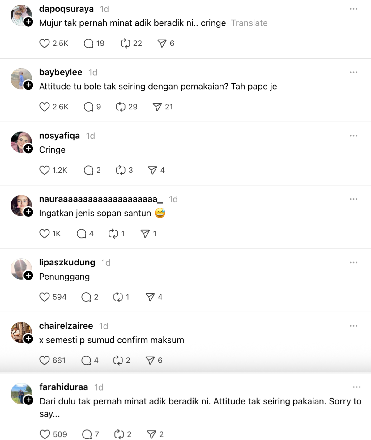 Sementara itu, hantaran individu tersebut mendapat pelbagai reaksi daripada netizen yang mendakwa sikap yang ditunjukkan tidak seiring dengan cara pemakaian.
