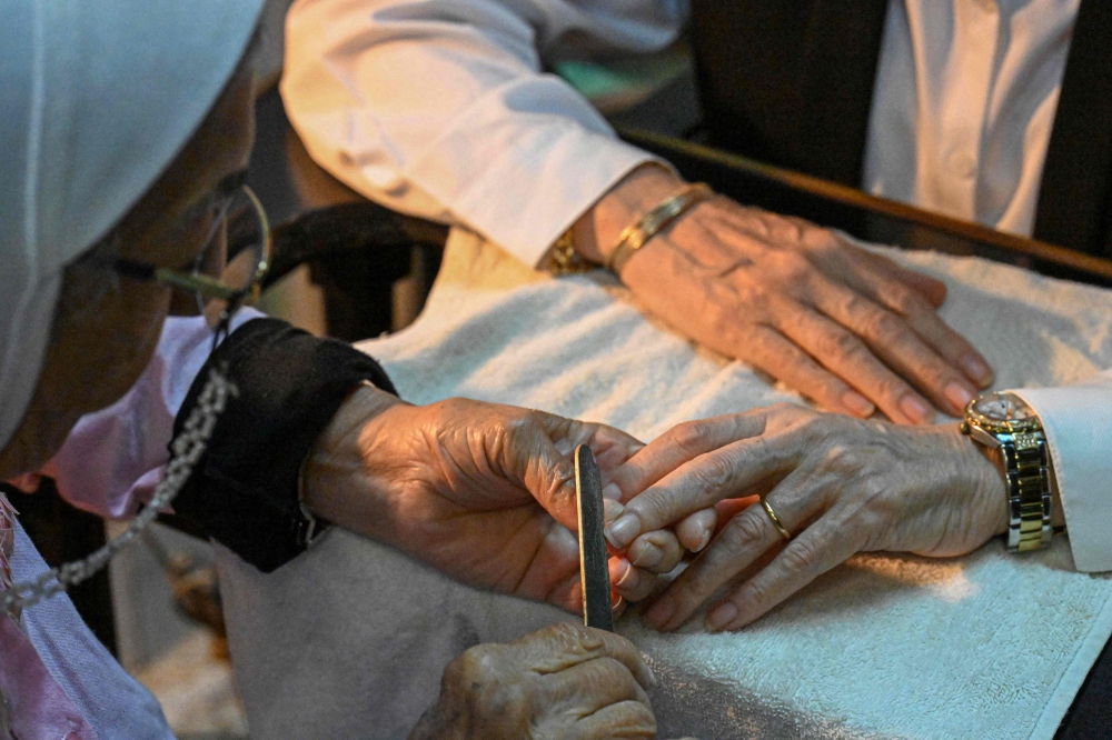 A client receives a manicure at Madam Lucie’s manicure shop in downtown Cairo on November 18, 2024. Decades ago, the shop’s seats were occupied by the likes of Nobel laureate Naguib Mahfouz, international singing sensation Dalida and cinematic heartthrob Omar Sharif, all of whom sought the now 88-year-old manicurist’s expert hand. — AFP pic
