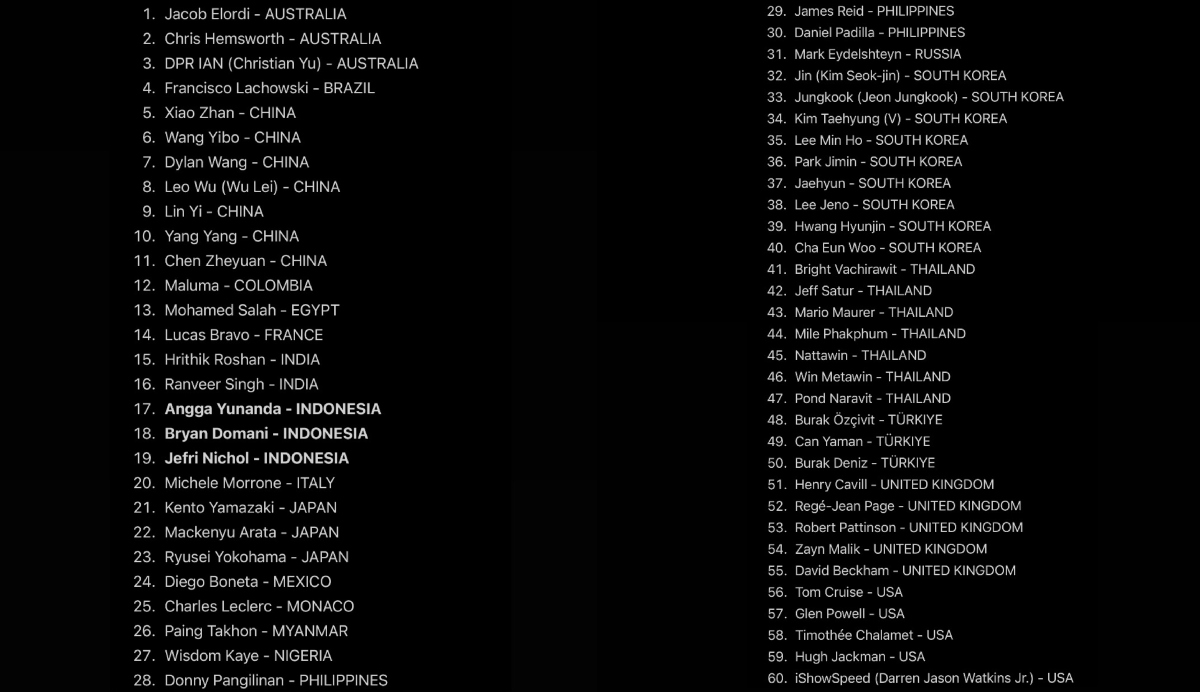 Pelakon Indonesia Jefri Nichol tersenarai dalam carta Lelaki Paling Kacak di Dunia 2026 bersama dua lagi bintang dari negara seberang itu iaitu Bryan Domani dan Angga Yunanda.