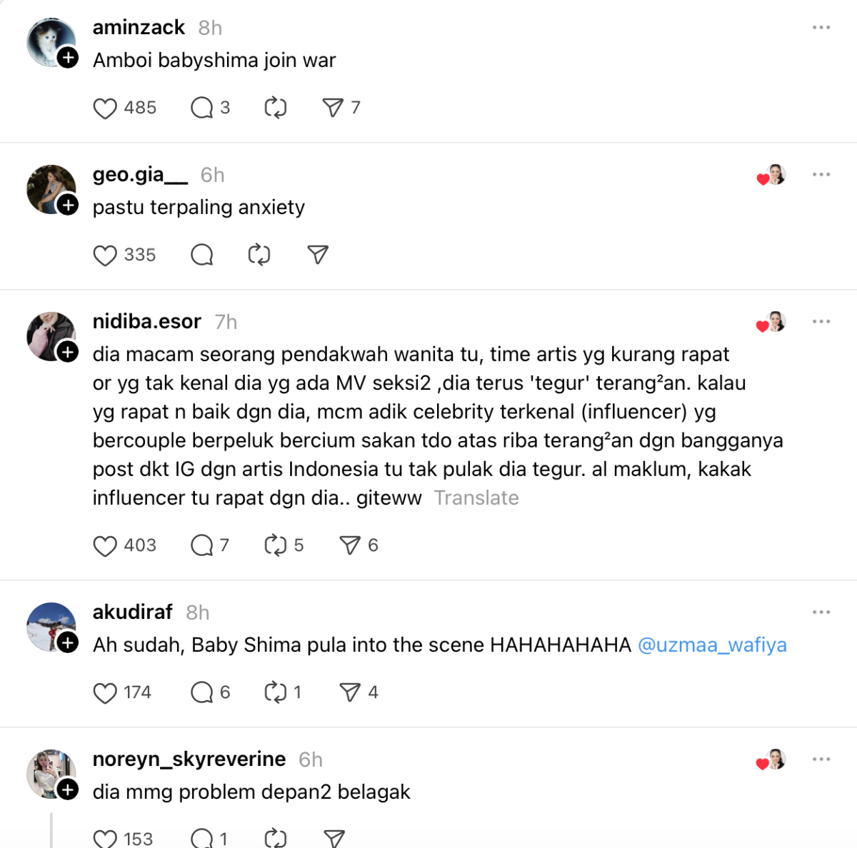 Menerusi hantaran itu, Baby Shima berkata dia baik sahaja dengan individu berkenaan namun hairan mengapa dirinya diperkatakan.