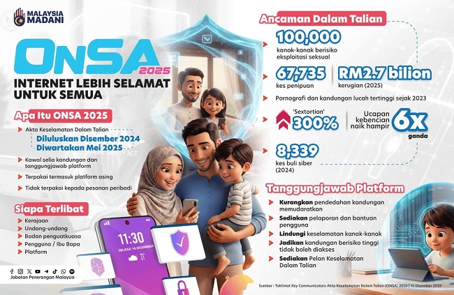 Jelas Fahmi, pendekatan operasi platform media sosial yang berbeza-beza turut mengukuhkan keperluan untuk mewujudkan kerangka tanggungjawab yang jelas demi keselamatan ruang digital negara.