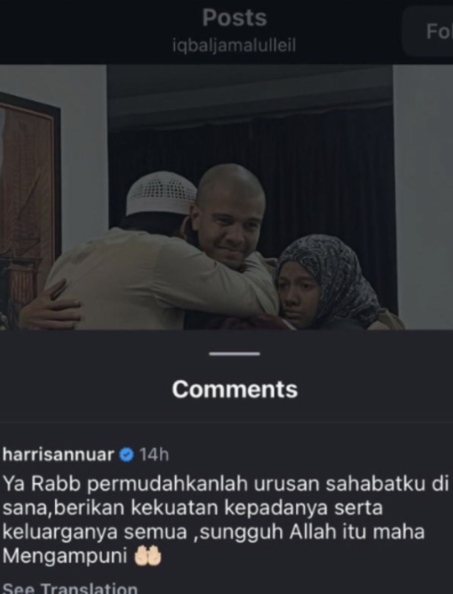 Menerusi hantaran di Threads, Harris berkata komen tersebut ditinggalkan di akaun adik Syed dan bukan kepada pendakwah berkenaan.