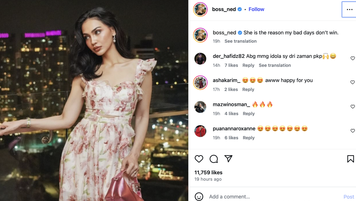 Usahawan Nedim Nazri menjadi perhatian apabila memuat naik gambar pelakon Nadia Brian mengenakan gaun merah jambu.