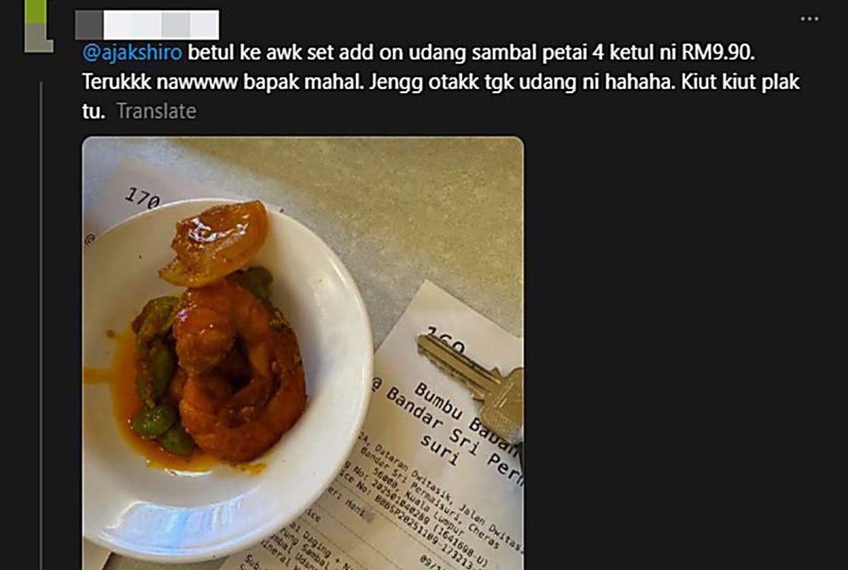 Menurut Ajak harga tersebut termasuk dengan petai yang ada di dalam sambal berkenaan dan harga petai juga kini mahal.