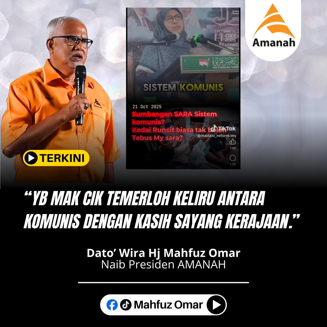 Naib Presiden Amanah, Datuk Mahfuz Omar berkata, ada pemimpin PAS yang keliru dan tersilap memahami apabila menganggap bantuan Sumbangan Asas Rahmah (SARA) sebagai meniru amalan ideologi komunis.