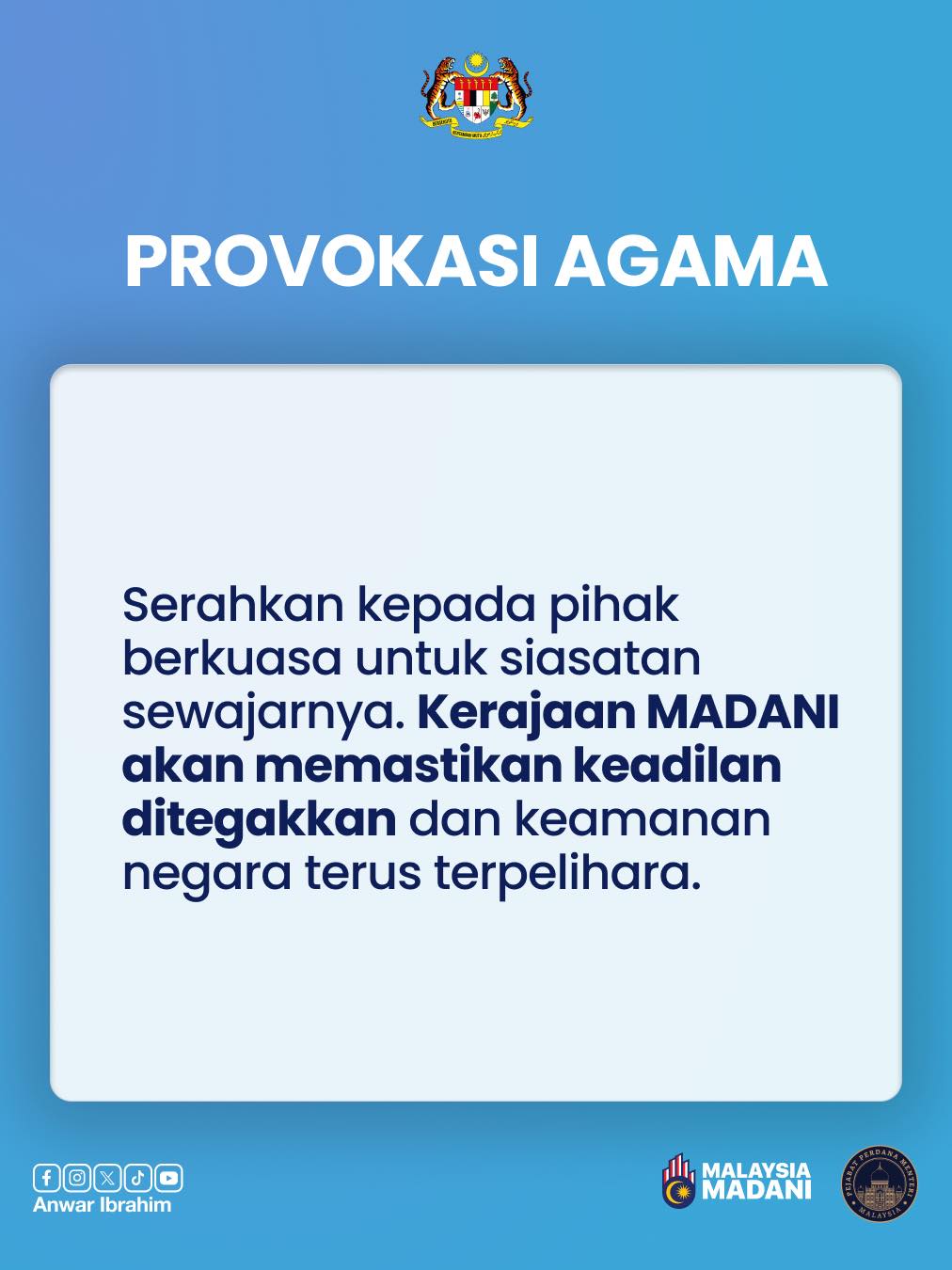 Provokasi agama: PM Anwar akan pastikan keadilan ditegakkan, keamanan negara dipelihara!