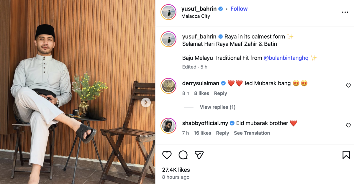 Turut menjadi perhatian, Yusuf menulis kapsyen ringkas ‘Raya dalam suasana tenang’ sekaligus mengundang tanda tanya di kalangan netizen.