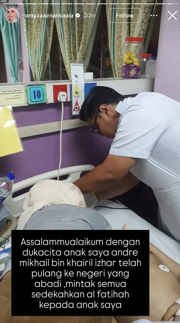 “Asalamualaikum dengan dukacita anak saya, Andre Mikhail bin Khairil Izhar telah pulang ke negeri abadi.”