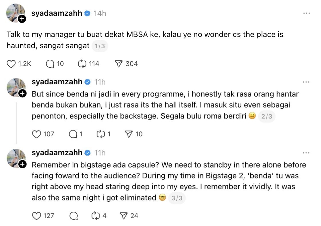 Sementara itu, adik kepada Shila iaitu Syada Amzah turut berkongsikan tempat berkenaan sememangnya agak ‘keras’ apabila berdepan pengalaman menyeramkan ketika program Big Stage.
