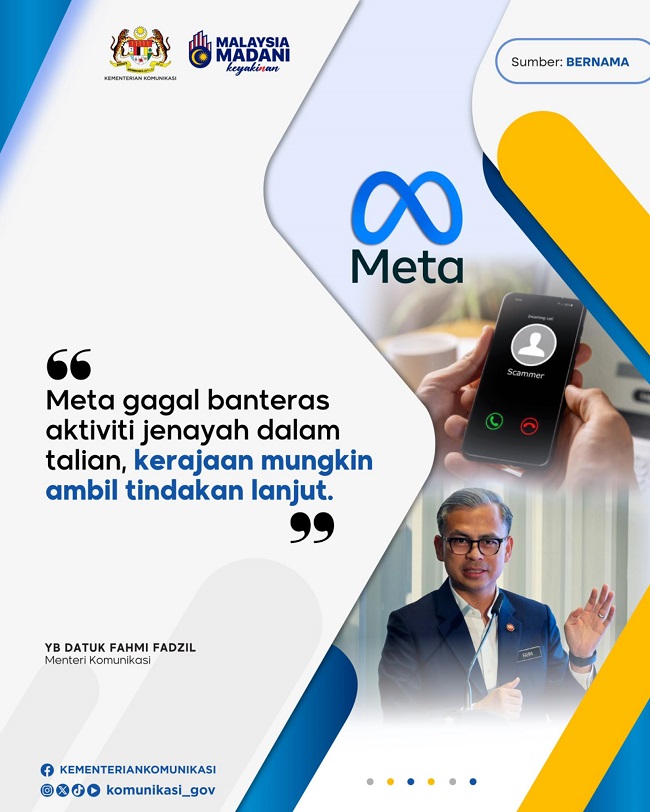 Sehinggakan Menteri Komunikasi, Datuk Fahmi Fadzil baru-baru ini memberi amaran keras terhadap META kerana masih gagal memberi kerjasama penuh dalam membanteras jenayah siber di platform-platform milik mereka.