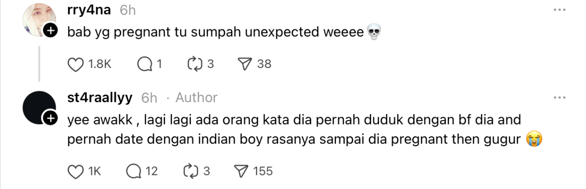 Tidak kurang juga, ada seorang pengguna Threads yang mendakwa wanita berkenaan pernah hamil serta keguguran.
