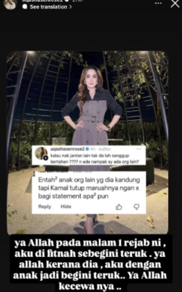 “Ya Allah pada malam 1 Rejab ni, aku difitnah sebegini teruk. Ya Allah kerana dia, aku dengan anak jadi begini teruk.. Ya Allah kecewanya,” tulisnya.
