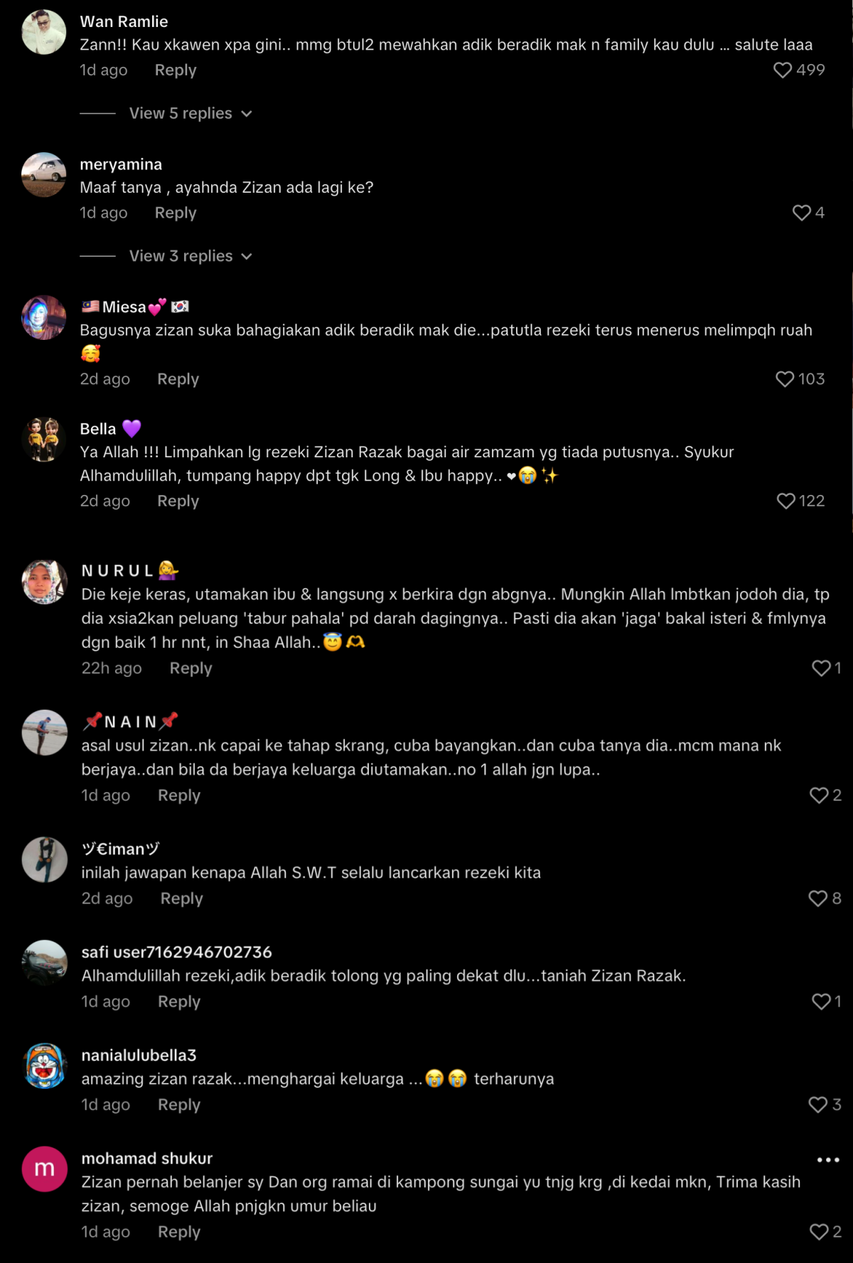 Diruangan komen, rata-rata netizen memuji Zizan yang sentiasa mengutamakan keluarga. Kata netizen lagi, meskipun belum bertemu jodoh lagi, namun Zizan diberi peluang untuk berbakti kepada keluarganya.